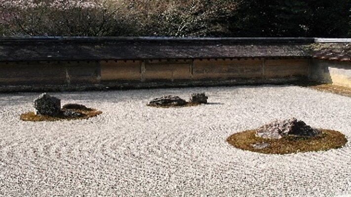 1450年細川勝元により創建。方丈の前庭は枯山水の石庭として著名で国の特別史跡名勝に指定。※1994年ユネスコ世界遺産「古都京都の文化財」登録。